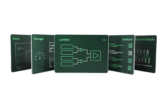 National Instruments software portfolio includes programming environments, application software, software add-ons, and software suites. NI offers programming environment such as LabVIEW, LabWindows/CVI for creating test and measurement applications with an intuitive graphical programming language, extensive libraries of IP, the ability to connect to any hardware, and a large developer community. NI also provides Software add-ons include modules, toolkits, applications, and more developed by NI and partners that extend your capabilities with industry-specific libraries or specialized deployment technologies.